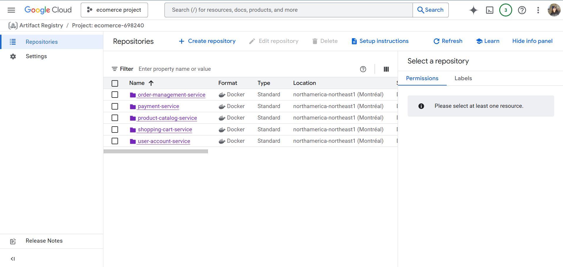 Access the Google Cloud Provider Console and select Artifact Registry from the service menu.