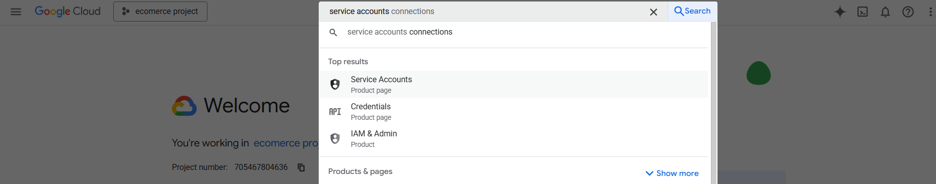 Next, navigate to Service Accounts in the Google Cloud Console.
