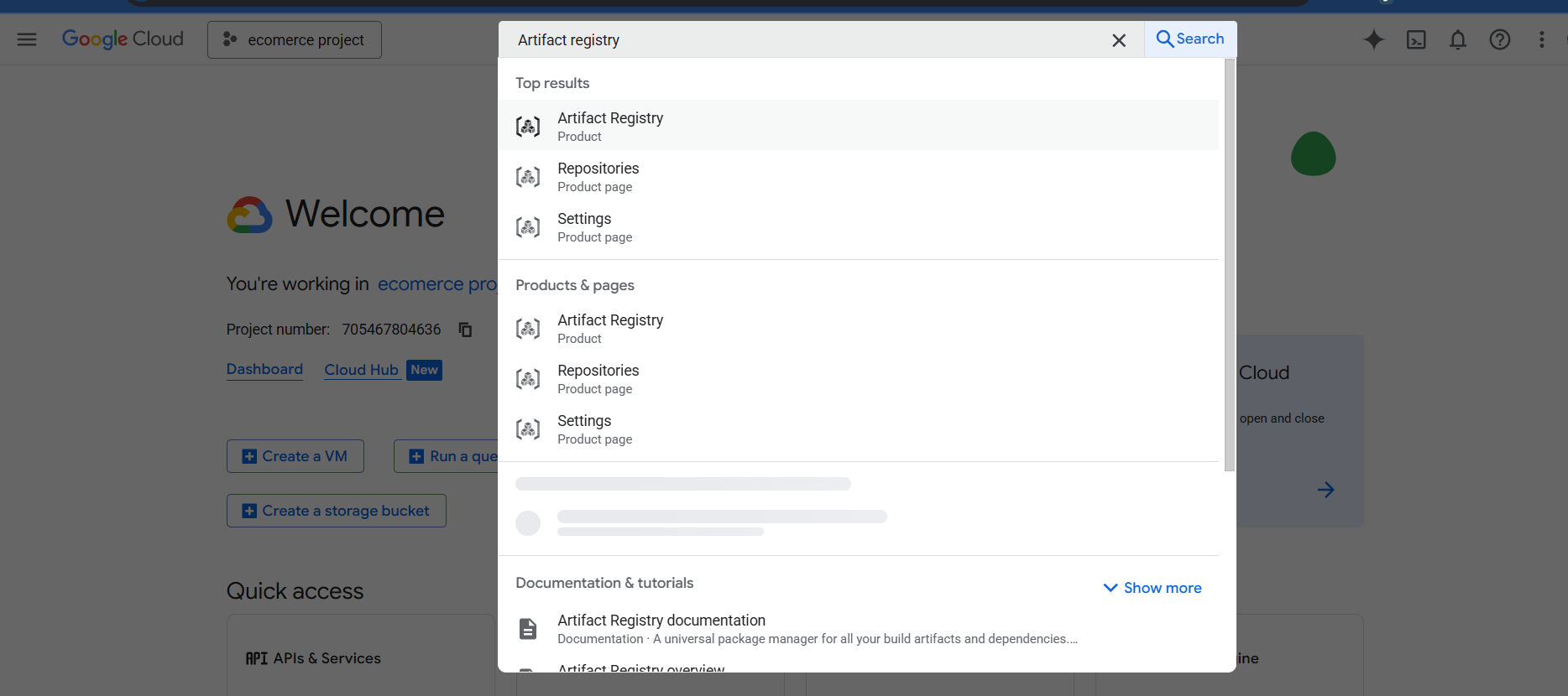 The Artifact Registry dashboard is displayed in the desired project being used for the integration.